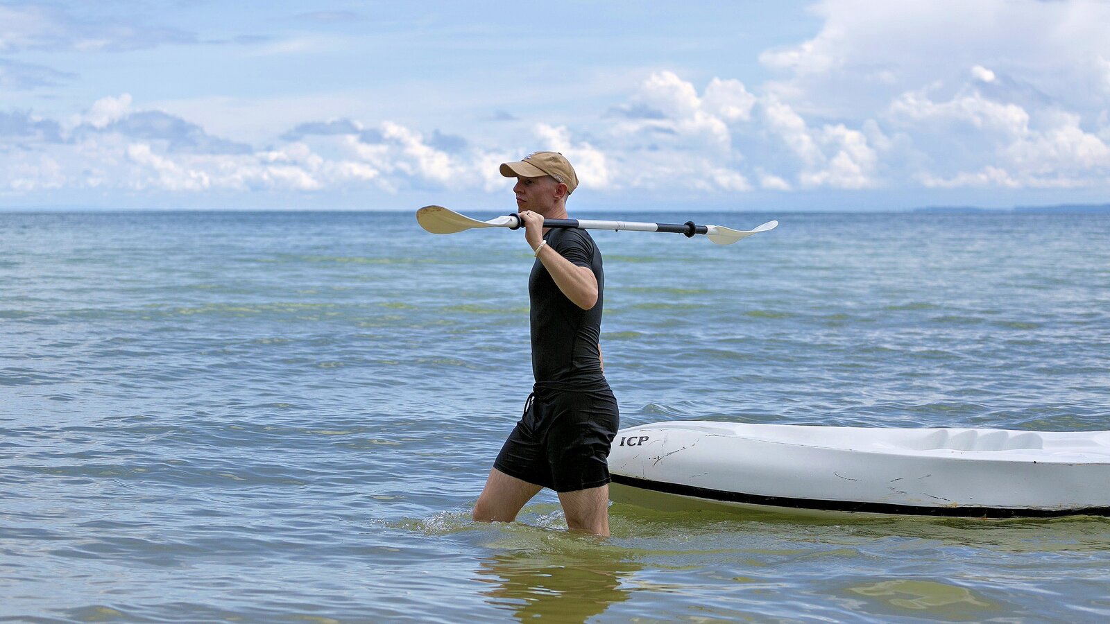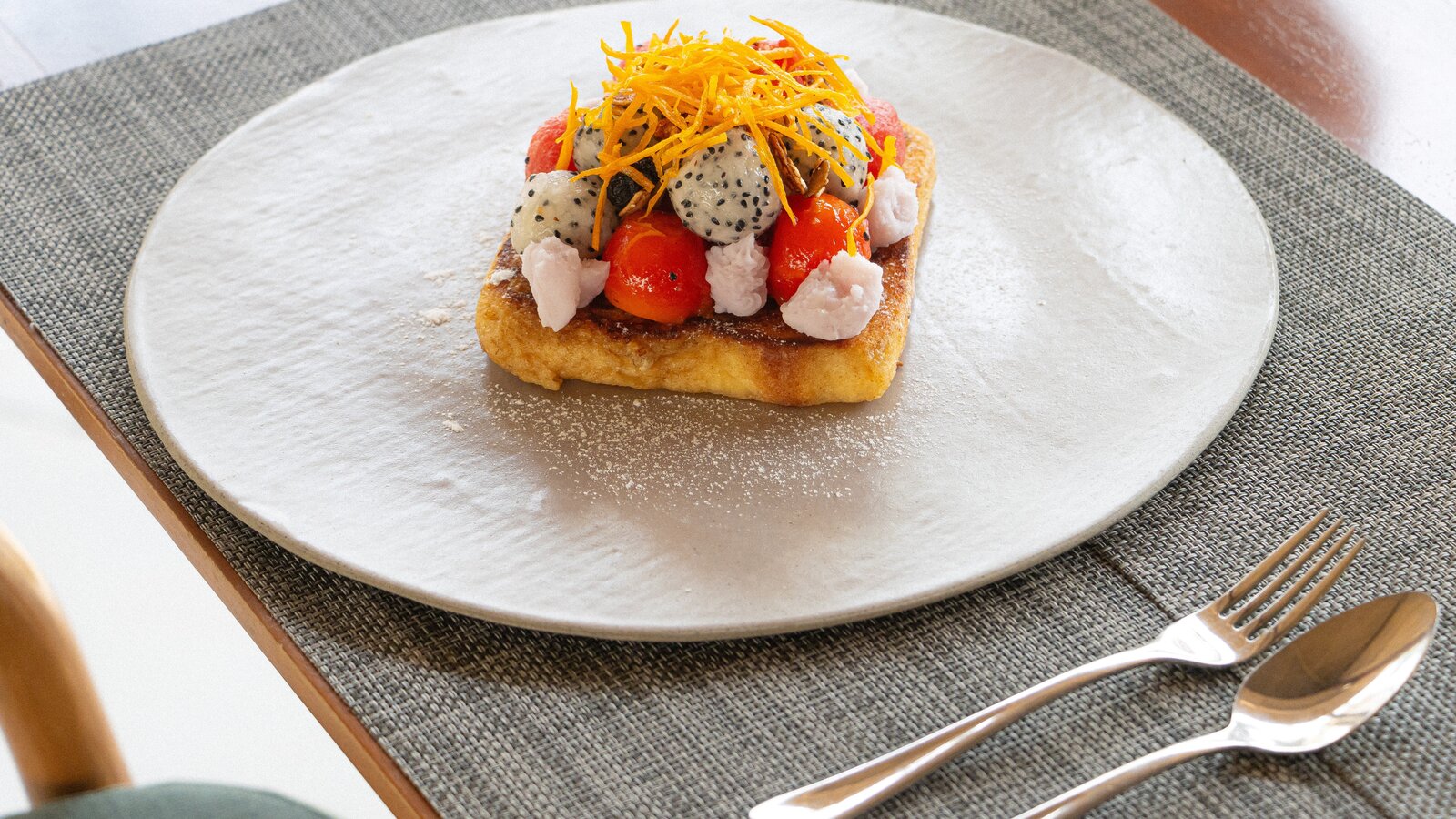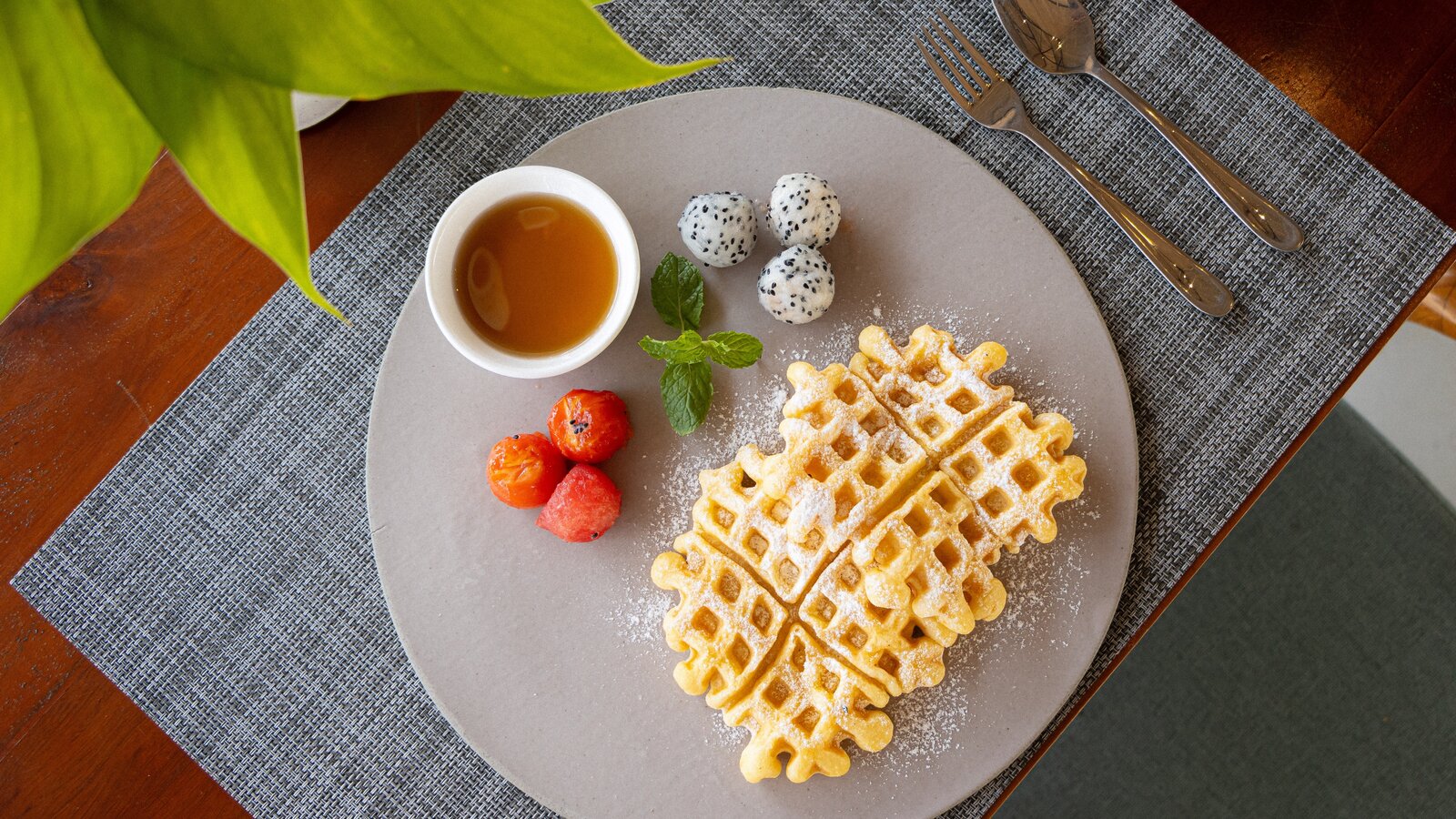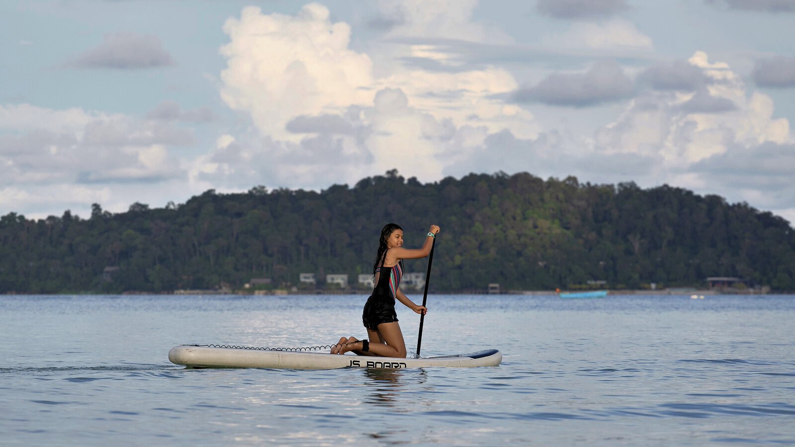 Stretching over the tree-shaded beach, the 25 m-long infinity pool has two depths on its 11-m width, one (1.3 m) for lap-swimming, the other (0.20 m) for lounging in the translucid water.