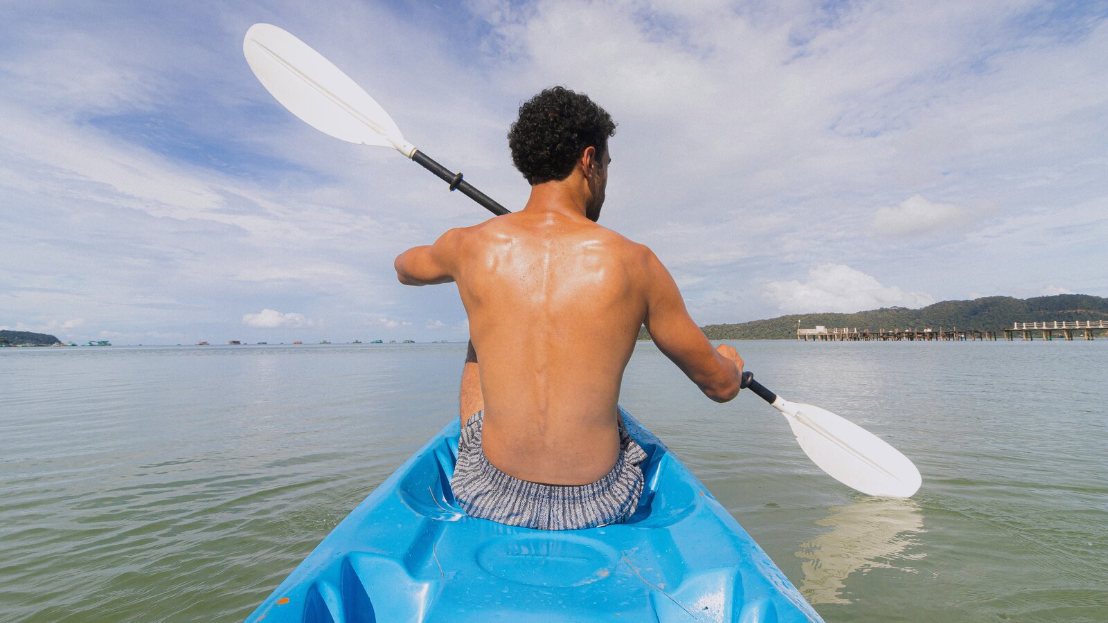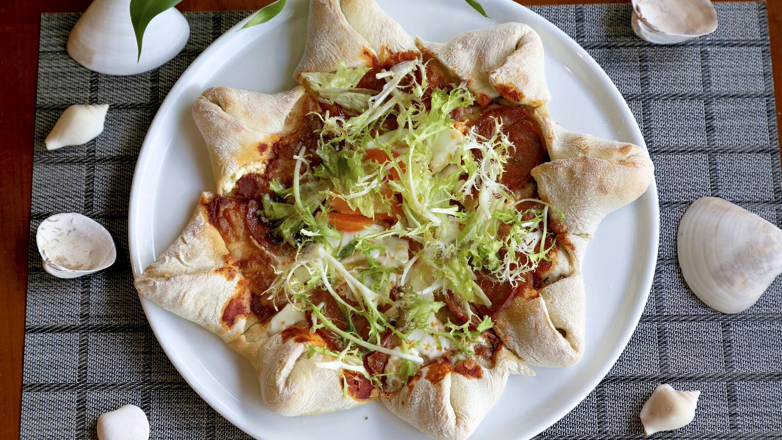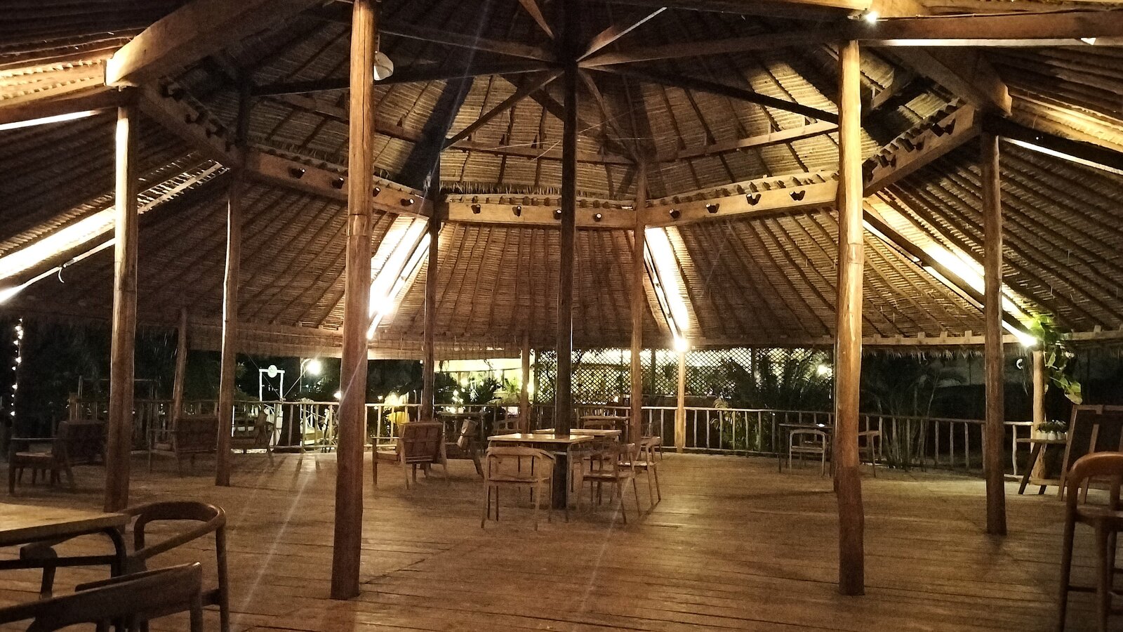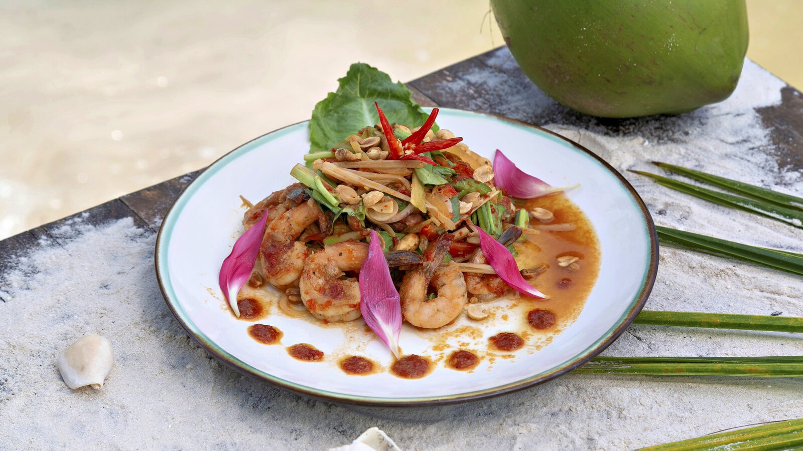 Ceramic-tiled, the basin catches the natural light from the sky and the nearby ocean. Main restaurant-lounge a few steps away from the deck with sunbeds and chairs.